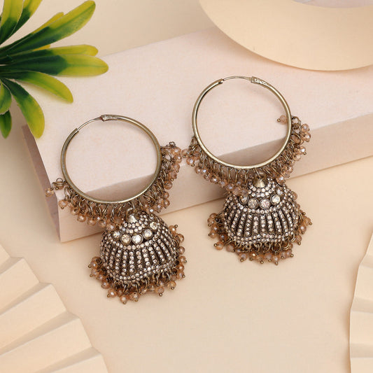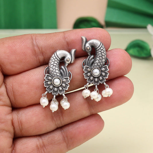 Antique White Color Oxidised Earrings For Ethnic Outfit Styling