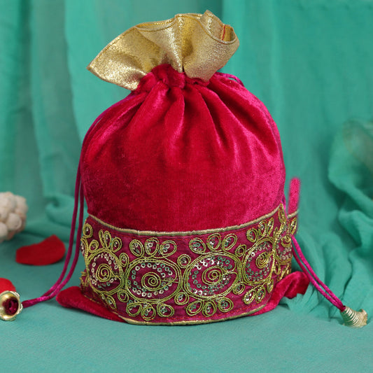Assorted Color And Design 5 Potli Velvet Bags (PTB234CMB)
