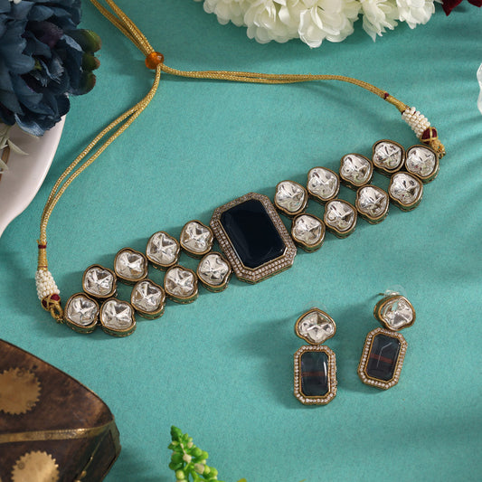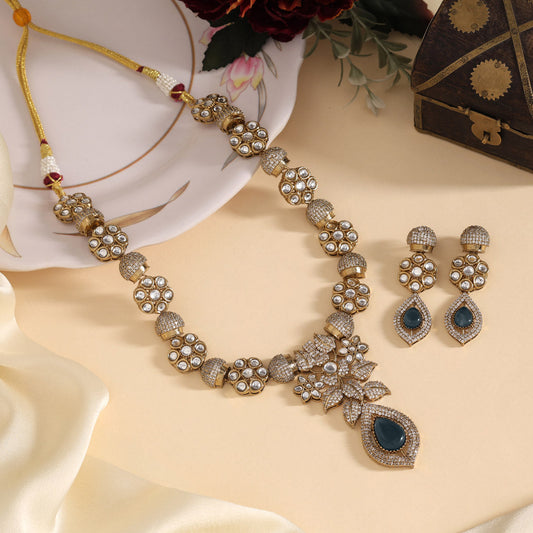 Blue Color Premium Quality Handmade In Jaipur Brass Ad & Monalisa Stone Necklace Set (CZN1071BLU)