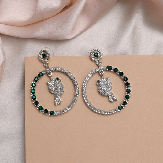 Green Color Fashion Earrings With Peacock Motif And Mirror Accent