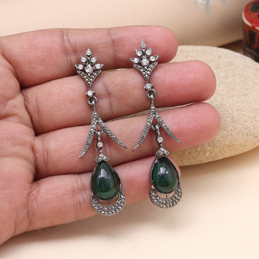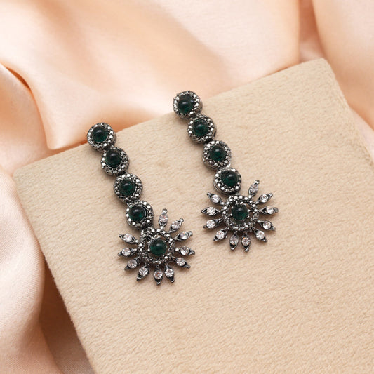 Bold Green Color Oxidised Earrings With Beautiful Handmade Finish