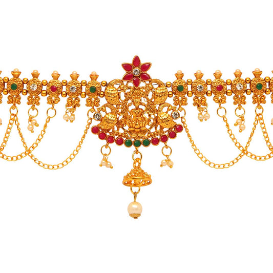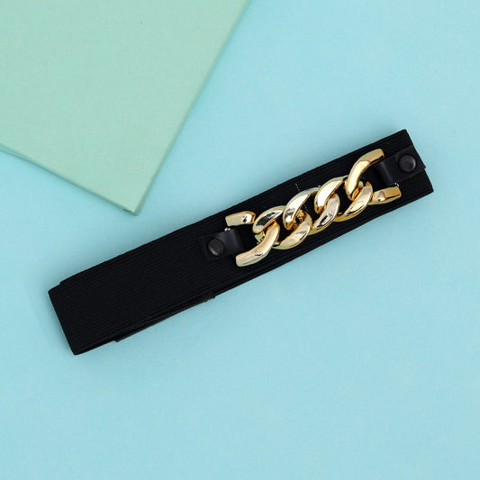 Gold & Black Color Kamarband Elastic Waist Belt For Women//Girls (KMBND494GLD)