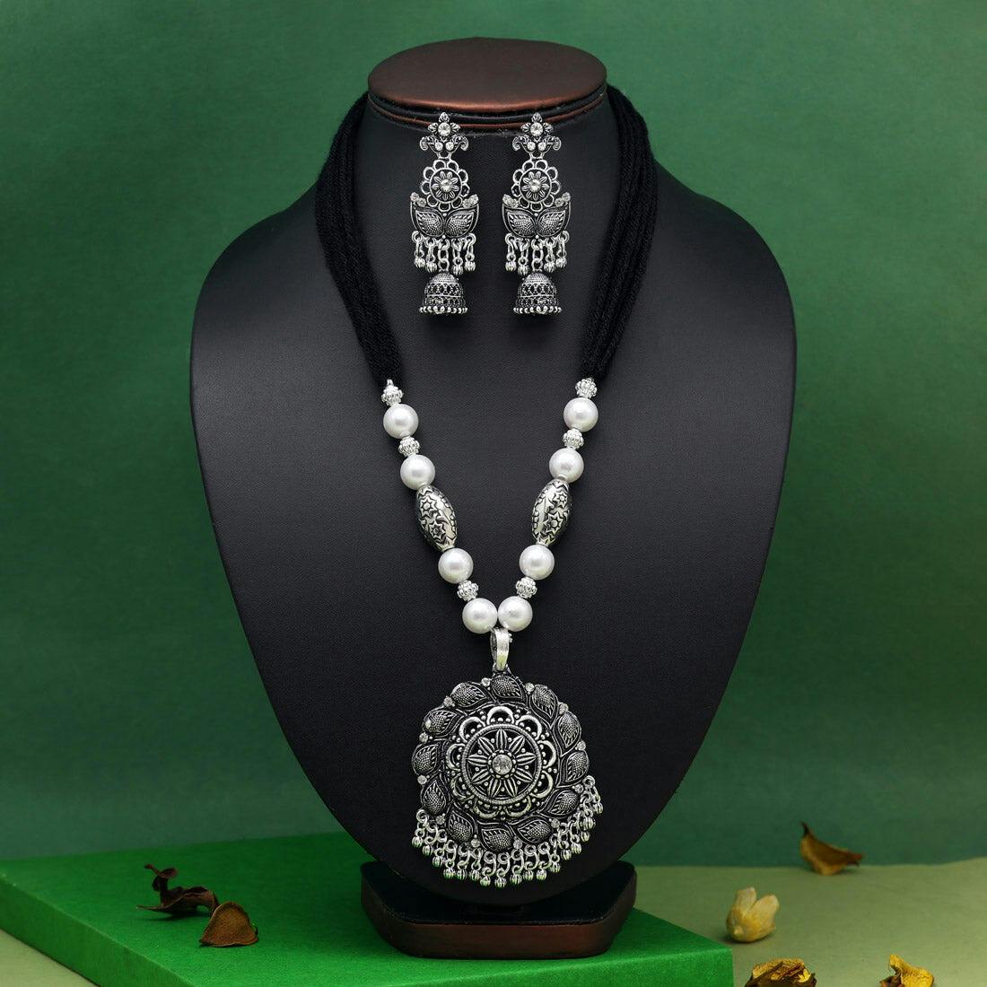 Silver Color Oxidised Necklace Set (GSN2052SLV)